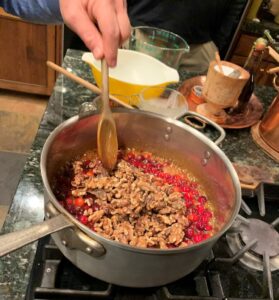 We would like to share a family dessert tradition. The great San Francisco pastry Chef Jim Dodge is the originator of this dessert. This is a Cranberry Caramel Tart and Walnut Caramel Tart from his book The American Baker: Exquisite Desserts from the chef of the Stanford Court. This book is still available and is a treasure trove of recipes. We adapted his recipe to make our own Cranberry, Walnut, Caramel Tart.